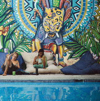 The hostel has a great pool with an incredible art piece, lovely wood finishings throughout the dining and common area. Well landscaped property with plenty of greenery and flowers. Best of all was definitely the staff! They all spoke great English and were tremendous help when it came to explaining services, serving food and drinks, booking shuttles and activities, giving advice on restaurants, and crucially... boosting my confidence before my surf lessons